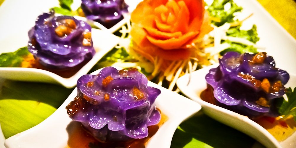 Steamed Thai butterfly flower dumpling filled with vegetable