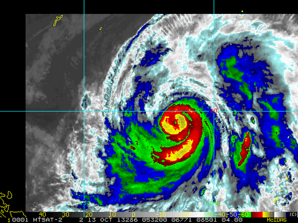 This entry was posted in Twitter on October 13, 2013 by twilight | Open » RT @anthonywx: Eye developing on Typhoon #Wipha S of Japan. SATCON intensity est. jumped from 90 to 107 kt. http://t.co/jMcT49MsST