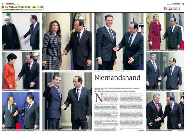 This entry was posted in Twitter on January 2, 2014 by twilight | Open » RT @DavidKenner: Dutch newspaper makes a collage to prove the French president is bad at handshakes. http://t.co/JGbXdRtnTA