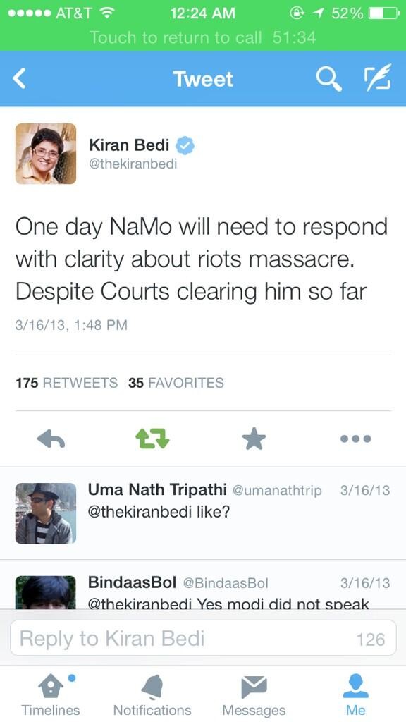 RT @VishalDadlani: As an ex-cop, @thekiranbedi must have strong views against the BJP’s criminal ministers, right? People such as Nihalchand too? Ma’am?