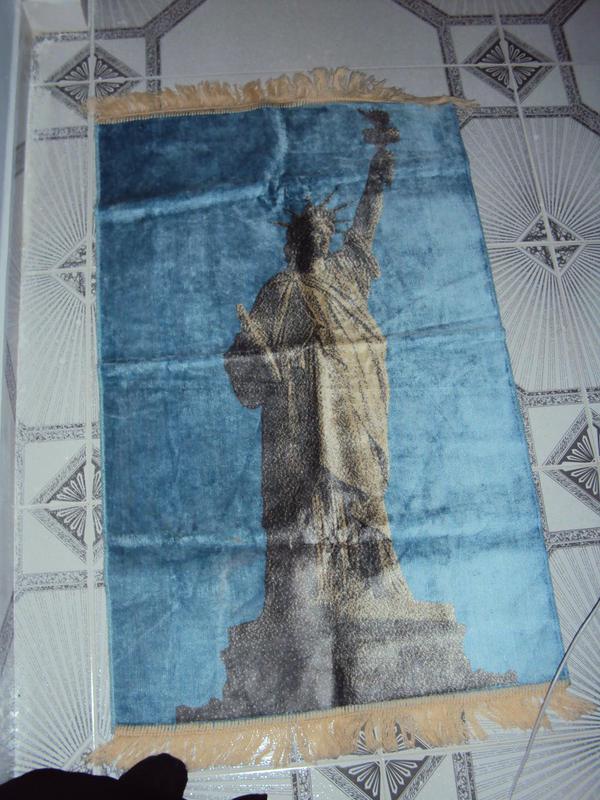 RT @48Refugee: A real prayer rug I found in our house in Gaza. I don’t get it either. Also pretty sure you can’t pray on a statue http://t.co/RbkTfFihXv