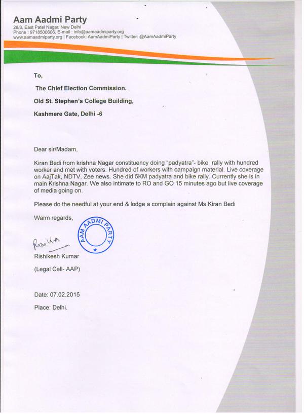 This entry was posted in Twitter on February 7, 2015 by twilight RT @seemagoswami: “@AamAadmiParty: Complaint has been filed with EC against Kiran Bedi ji for violation of MCC. http://t.co/lP4lPPAewl” Woah!