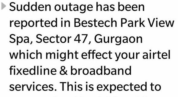 This entry was posted in Twitter on March 8, 2015 by twilight RT @prasanto: Our 12th full-day landline+internet outage at our Gurgaon condo in 30 days, courtesy @Airtel_Presence. http://t.co/Kq5cGeLhOx