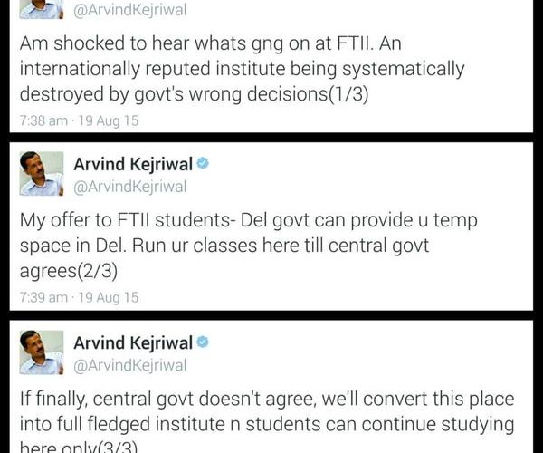 This entry was posted in Twitter on August 18, 2015 by twilight RT @VishalDadlani: This is great! Thanks @ArvindKejriwal for giving the oppressed #FTII students an option! http://t.co/YHGKNbRvl5