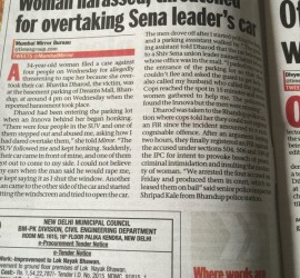 This entry was posted in Twitter on October 24, 2015 by twilight | Open » RT @anaggh: Woman harassed, threatened for overtaking Sena Leader’s car. YES it happens regularly. I have also had this problem. https://t.co/6CxMJN6o0k